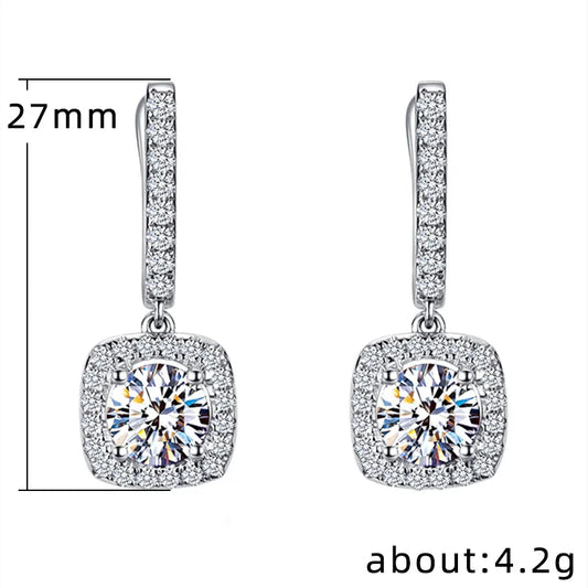 Classical Designer 18K White Gold Plated Square Shape Cubic Zirconia Clip on Earrings for Women Sapphire Crystal Diamond Drop Earrings Dangle Earring Anti-Allergy